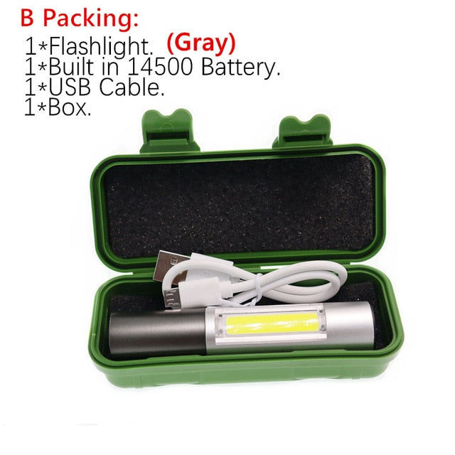Zoom tocha mini lâmpada de trabalho portátil xpe + cob led lanterna carga usb 1 * embutido 14500 bateria